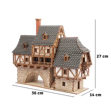 The Bridge Dwelling - Fawlty Manor – 28mm Scale Model Kit - Medieval European - Fantasy Tavern – 465 pieces – Model Building Kits for Adults
